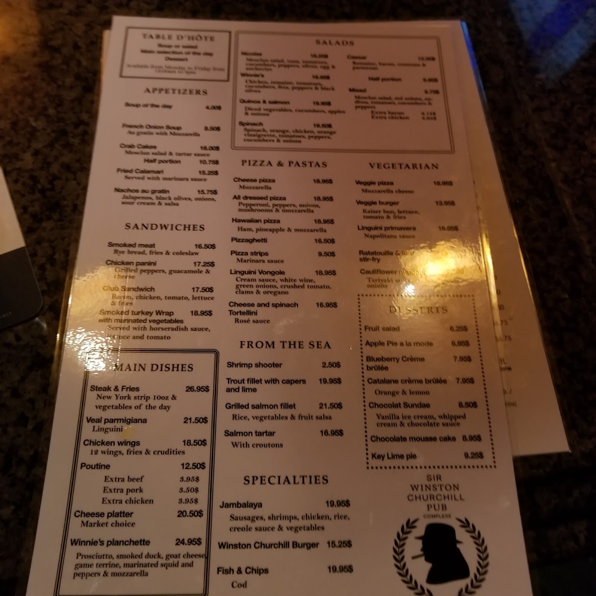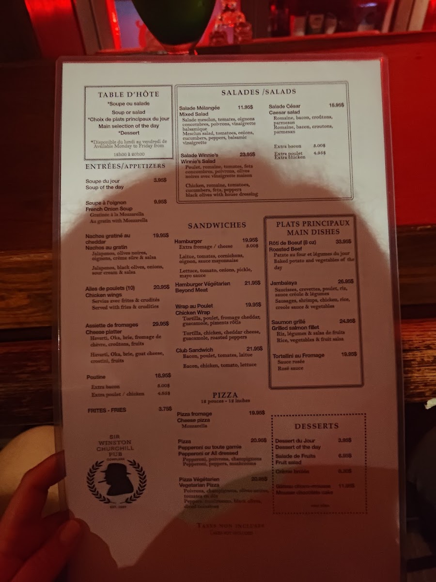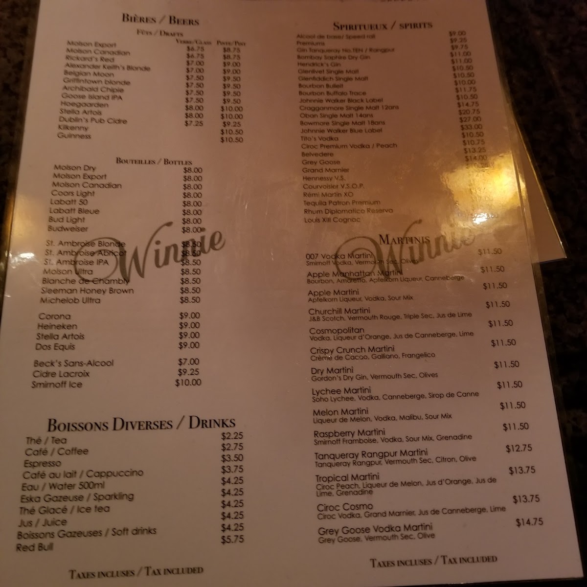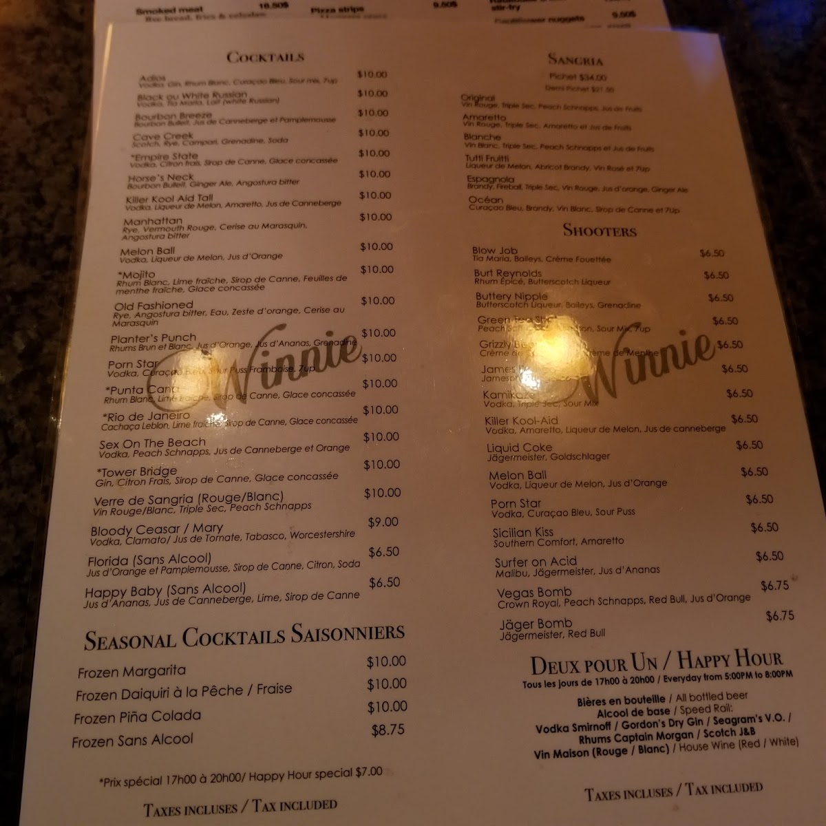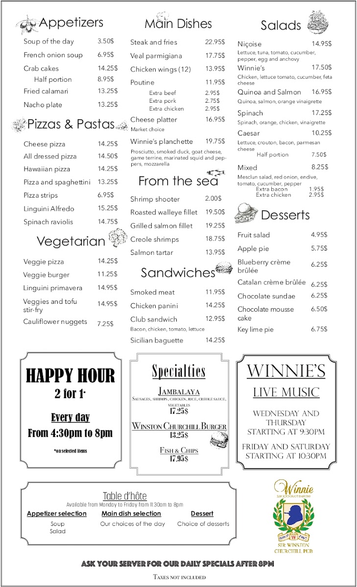 Winnie's Bar Restaurant Menu